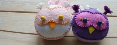 Итак нам понадобится: Фетр любого цвета, которой пожелает ваша фантазия 3 цвета контрастных ниток – шерстяные или мулине, не важно, главное не очень тонкие. Бусины, в данном случае деревянные Синтепон Ножницы Длинная иголка с большим ушком Плотная бумага и карандаш Акриловая краска или цветные гелевые ручки Тесьма Рисуем выкройку. Вырезаем по выкройке фетр. Если фетр тонкий, все парные детали вырезаем одновременно из сложенного вдвое фетра. Тельце нашей совы состоит из 3 деталей, чтобы игрушка получилась ровная и аккуратная, отмечаем середину деталей и совмещаем. Теперь отрезаем длинную нитку, чтобы сшить все части одной ниткой - меньше узелков, аккуратней шов и работа в целом. Сшиваем все декоративным швом. огда тельце почти сшито, набиваем синтепоном и зашиваем. Прикладываем вырезанные глазки и носик, вдеваем в иглу нить другого, контрастного, цвета. Нос советую сначала приклеить, а потом сверху пришить область глаз. Приступаем к самому интересному – делаем ушки-кисточки! Чтобы наша совка была более выразительная, к области глазок пришиваем бусины, вышиваем вокруг яркой ниткой и расписываем акриловой краской, тогда у каждого автора получится своя индивидуальная совка! Пришиваем ушки. Ушки можно оставить «петельками», а можно петли разрезать – тогда совка получится с пушистыми ушами. Сова готова! | |