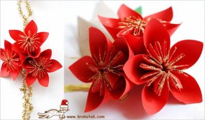 Для работы тебе понадобятся: Цветная бумага, ножницы, клей и прищепки. Прищепки будут нужны, чтобы закрепить форму лепестков. Возьми лист цветной бумаги и подели его на 4 части как показано на примере. Половина листа останется целой, а другую нужно разрезать на одинаковые по ширине квадратики. Из этих квадратиков мы и будем делать лепестки для цветка. Теперь каждый из квадратиков нужно сложить так как показано на этой схеме, не пропуская ни одного этапа: Первый лепесток готов, теперь его нужно сложить и закрепить прищепкой. Оставь лепесток и складывай новый. Для одного цветка тебе нужно сделать пять лепестков. После того как лепесточки примут нужную форму их нужно будет склеить вместе в цветок. Если покрыть цент цветка лаком или краской с блестками получится очень красивый цветок. Собери композицию из таких цветов и подари маме или бабушке на праздник. | |